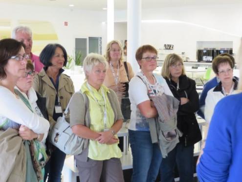 Der Single- und Freundeskreis Osnabrück besichtigt Kaffee-Partner. Vor zwei Jahren ist Kaffee-Partner von Wallenhorst in das neue Firmengebäude umgezogen. Der terrassenförmig angelegte Verwaltungsbau bietet auf 5.000 qm Fläche Platz für 300 Mitarbeiter. Das Forum im Inneren des Gebäudes ist der zentrale Treffpunkt für alle Mitarbeiter und Besucher. Hier gibt es Kaffee-Partner zum Anfassen und Ausprobieren.