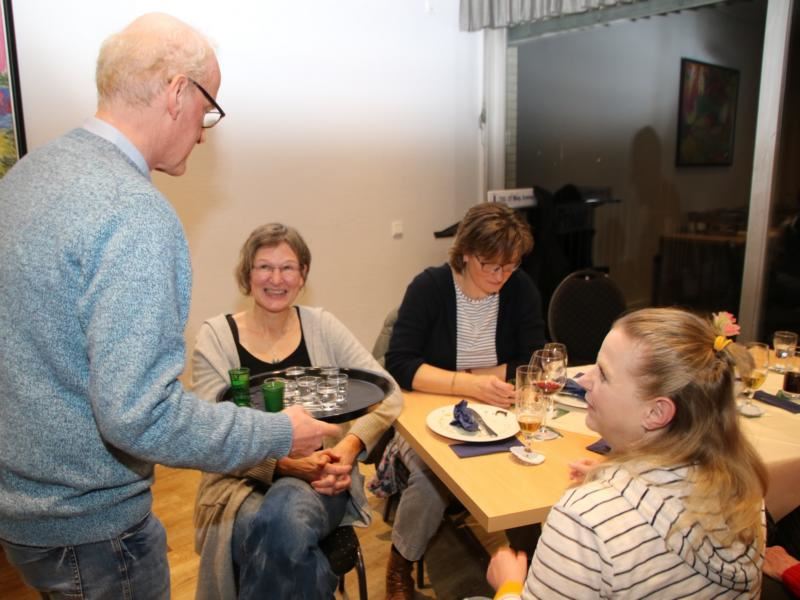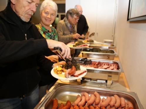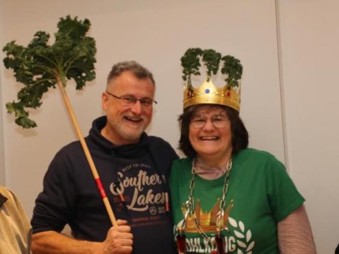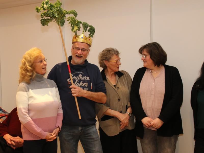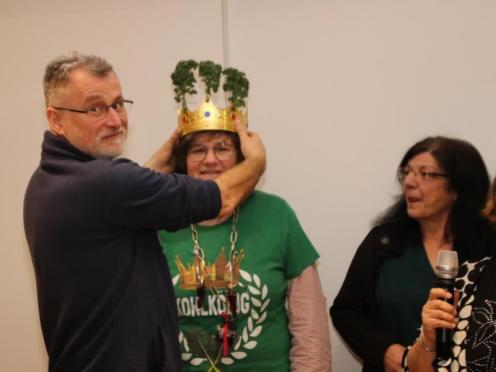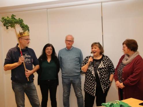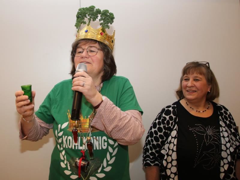 Die bisherigen Grünkohlkönige und Grünköniginnen des Single- und Freundeskreises gucken sehr genau, wer den Teller leer ißt. Dann ziehen sie sich zur Wahl der neuen Majestät zurück. Nach einigen Beratungsschnäpsen verkünden sie: Lioba IX. ist die neue Single-Grünkohlkönigin von Osnabrück. (21.01.2023)