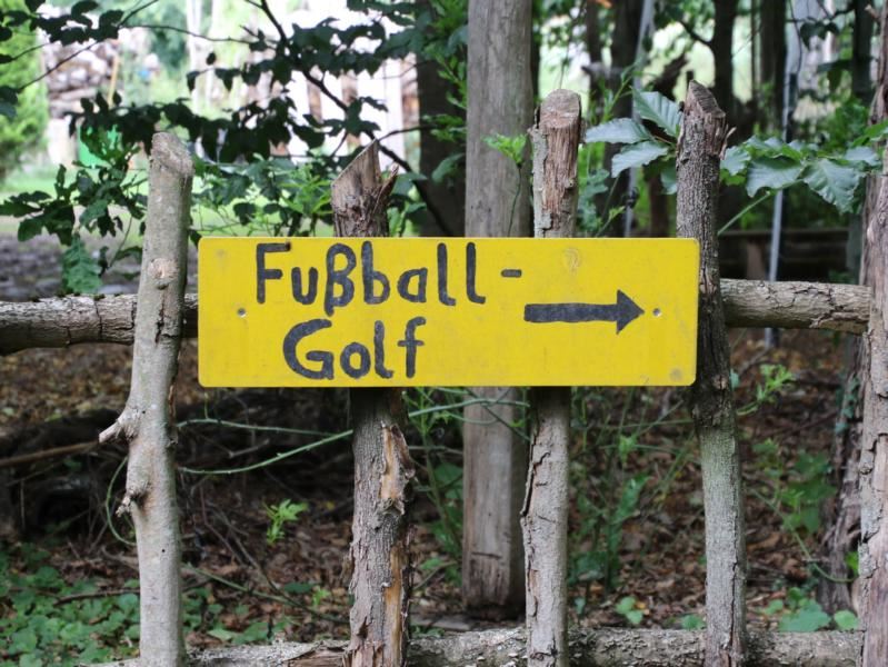 Fussballgolf ist eine Kombination aus Fußball und Golf. Man spielt mit einem normalen Fussball. Der Ball muss am Ende jeder Bahn mit möglichst wenigen Schüssen eingelocht werden. Doch auf den 15 Bahnen gibt es immer wieder neue Hindernisse. Manchmal klappt es bereits mit einem Schuss, aber auf der nächsten Bahn sind dann 10 Versuche nötig.