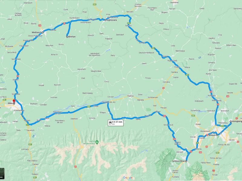 Über Wien fliegen wir nach Hermannstadt (Sibiu). Wir wollen Siebenbürgen in der Mitte Rumäniens erkunden. Die erste Nacht verbringen wir in Sichtweite von Draculas Schloss und besichtigen es am nächsten Morgen. Danach geht es in das Bärenreservat von Zarnesti. Dort leben 125 Bären auf 69 Hektar. Ein kurzer Abstecher in Kronstadt (Brasov), bevor es zur Wehrkirche von Tartlau geht. Über Schäßburg und Mediasch fahren wir nach Hermannstadt.