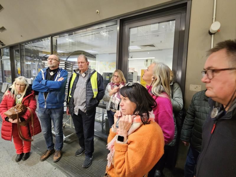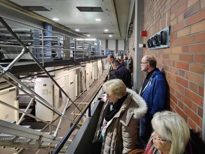 Die Druckmaschinen wiegen 400 Tonnen und arbeiten nahezu vollautomatisch. Aus 50 Tonnen Papier entstehen jede Nacht 300.000 Zeitungen. Über Förderbänder kommen die Zeitungen in die Weiterverarbeitung. Maschinen packen die Beilagen hinzu und bündeln die Zeitungen in handliche Pakete für die Zeitungszusteller. Zum Abschied gibt es für jeden Teilnehmer noch "die Zeitung von morgen". (12.01.2024)