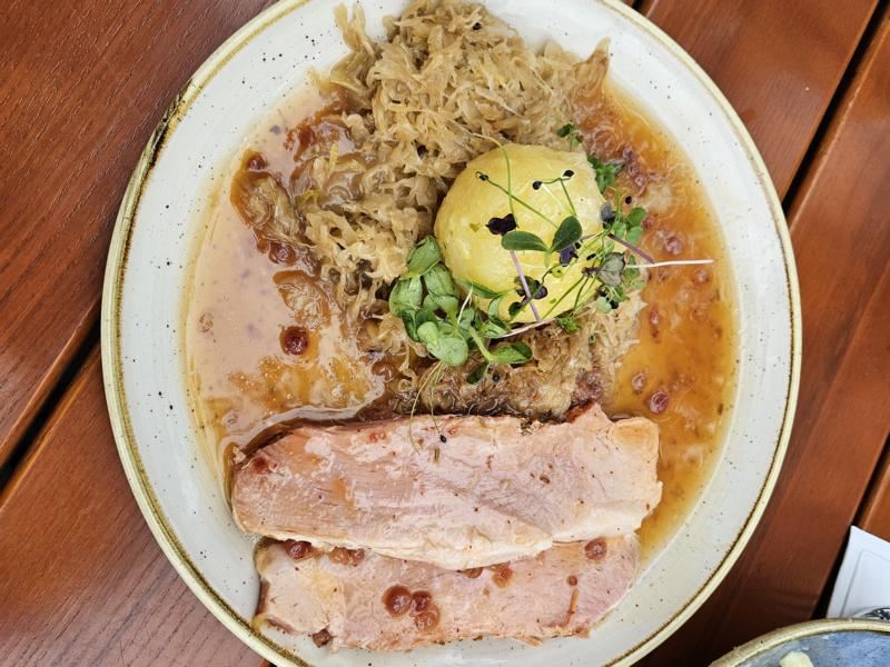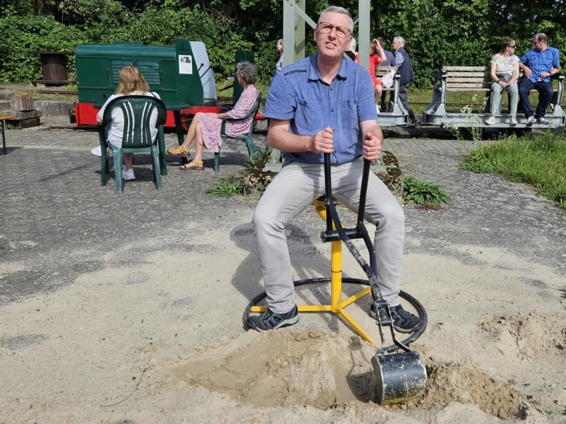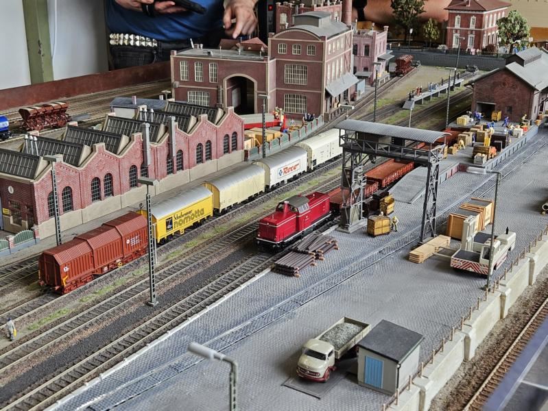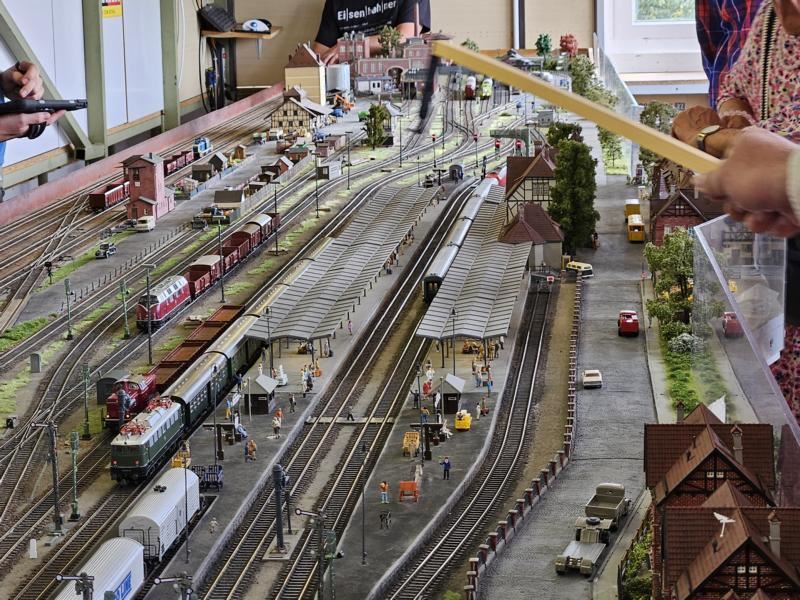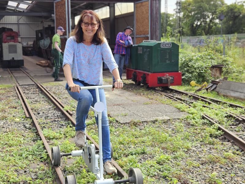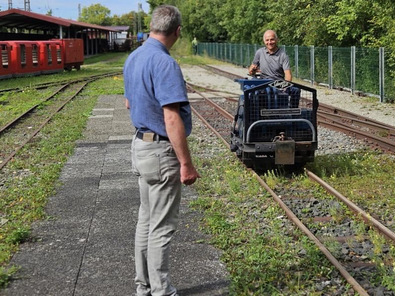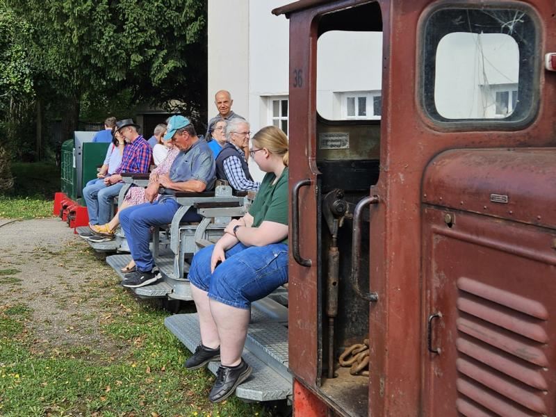 Dann holt uns die Feldbahn zu einer Rundfahrt über das grosse Gelände ab. An jedem Schienenstoss wird unser Rücken durchgerüttelt. Wie haben die Arbeiter das damals jeden Tag ausgehalten? Stolz präsentiert der Vorsitzende seine Schätze in und vor der Halle. Zu jeder Lok gibt es eine spannende Geschichte. Zur Erholung fahren wir zum Malepartus und klönen bei bayerischen Essen. (08.09.2024)