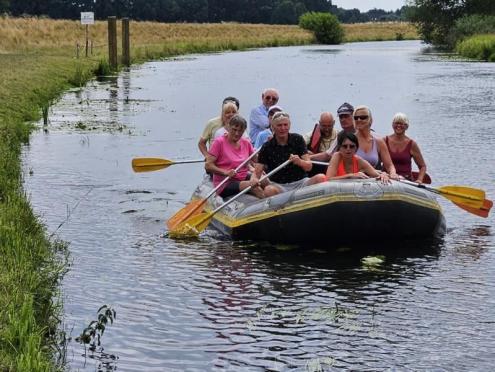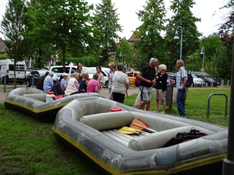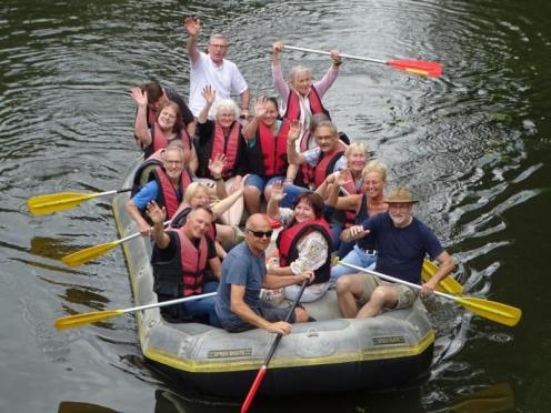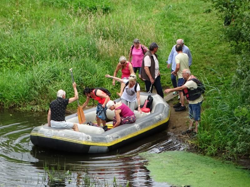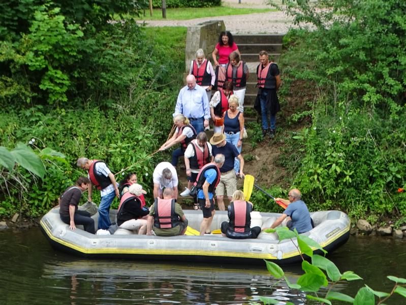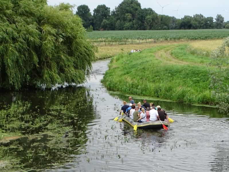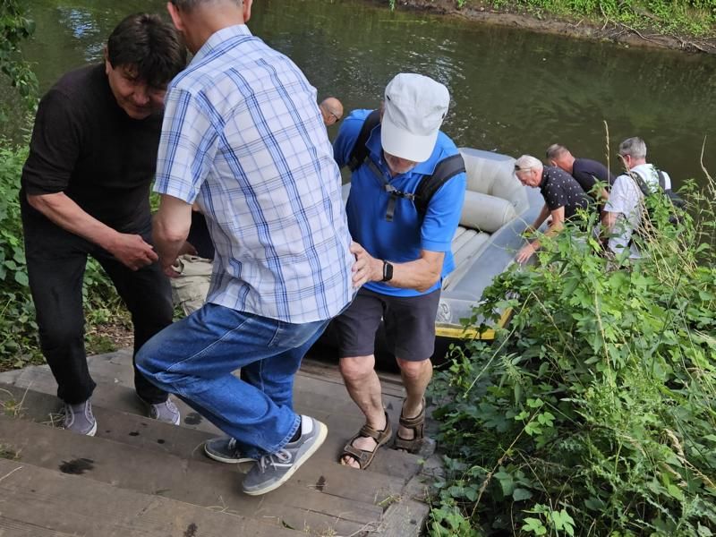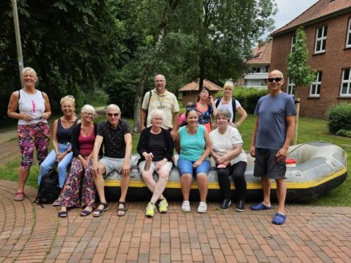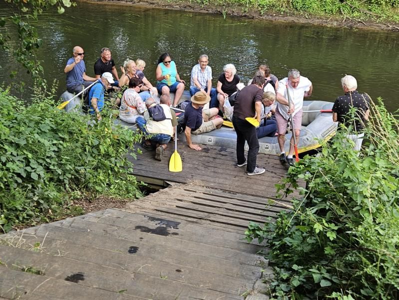 Wir starten in Bramsche und haben reichlich Wasser unter dem Kiel. Durch die Strömung geht es schnell vorwärts, und wir müssen nicht viel paddeln. Für die meisten Teilnehmer ist es die erste Schlauchbootfahrt auf der Hase. Am Ziel in Rieste ziehen wir die Boote aus dem Wasser und helfen beim Verladen. Unser gemeinsames Essen im Restaurant "Kreta" in Bramsche haben wir uns verdient. (28.06.2025)