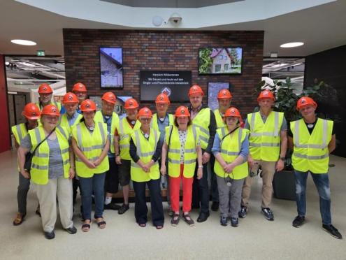 Bereits in der Eingangshalle werden wir freundlich begrüsst. Weste und Schutzhelm auf, und dann geht es auch schon los zur Besichtigung von Feldhaus-Klinker in Bad Laer. Das Unternehmen wurde 1857 gegründet und ist auch in der fünften Generation immer noch im Familienbesitz.