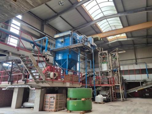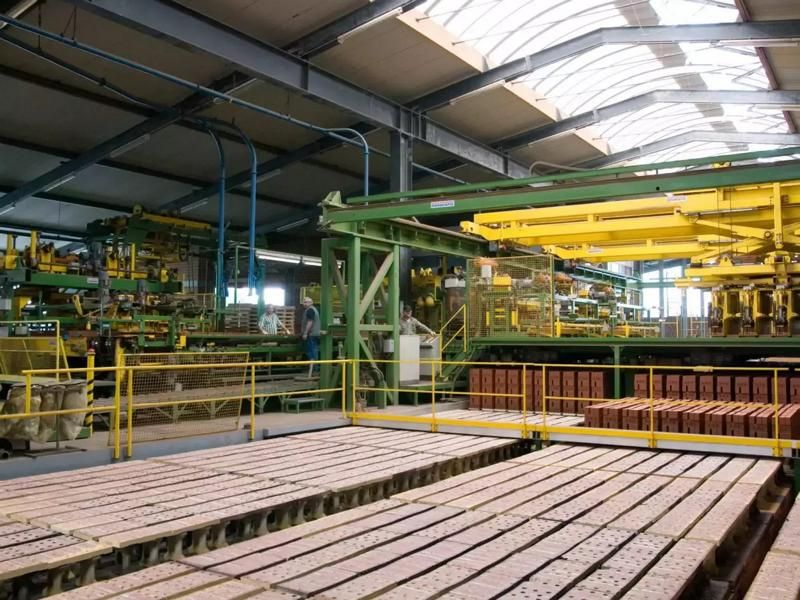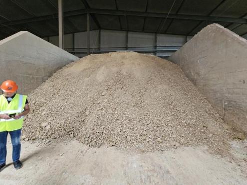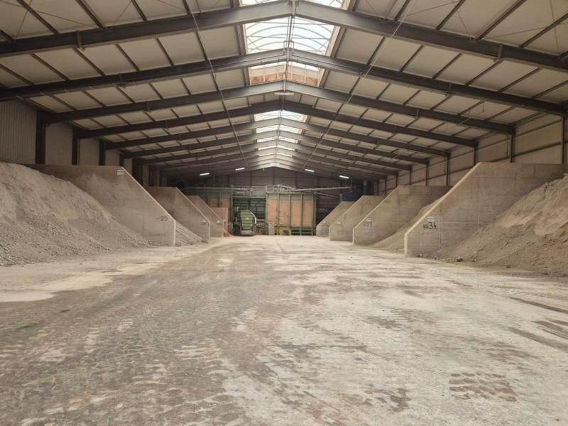 Feldhaus hat eigene Tongruben für roten Klinker. Rohmaterial für andere Farben kommt z.B. aus dem Westerwald. Die unterschiedlichen Tonsorten werden in grossen Hallen gelagert, damit die Feuchtigkeit im gewünschten Bereich bleibt.