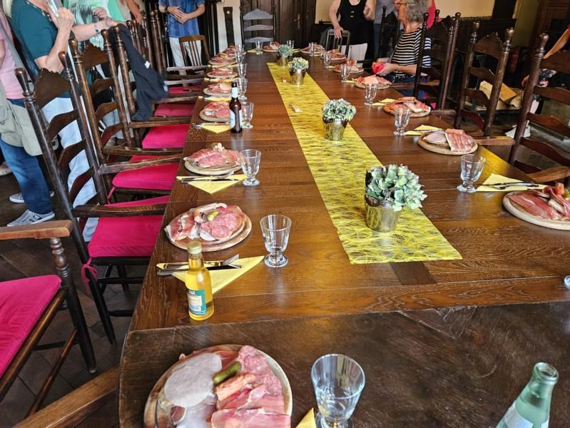 Nach eineinhalb Stunden geht es ins Jagdzimmer. Dort steht für jeden Teilnehmer ein grosser Teller mit Schinken, Salami und Wurst auf dem Tisch. Als die Bäuche voll sind, geht es noch in den Hofladen und dann zufrieden nach Hause. (20.09.2025)
