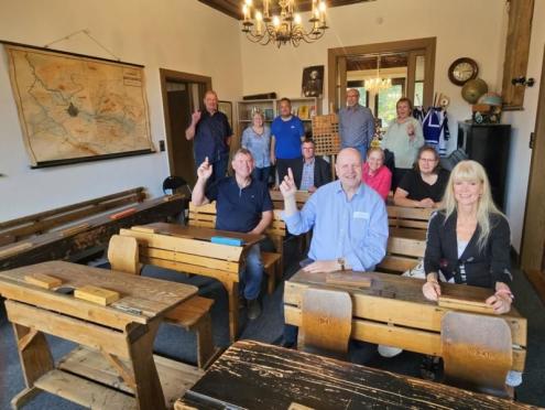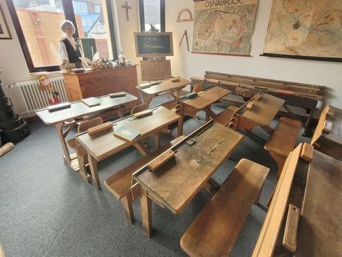Die Mitglieder vom Single- und Freundeskreis Osnabrück müssen zum Nachsitzen nicht in ihre alte Schule. Zum Glück gibt es das Schulmuseum Osnabrück. Denkste, da sind nur die kleinen Bänke aus der Grundschulzeit. Aber wir passen immer noch in die Schulbänke.