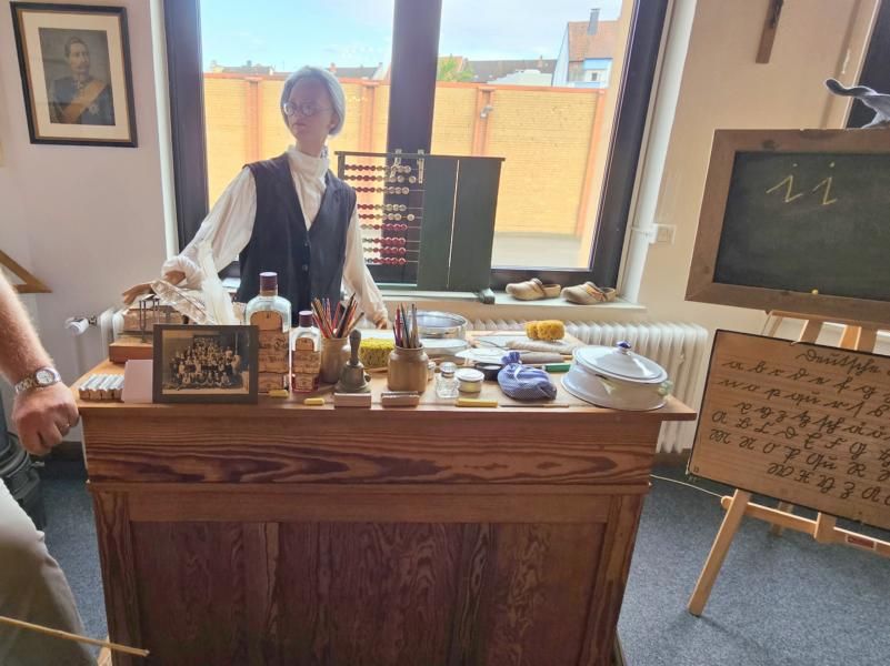 Unser Führer war Gymnasiums-Direktor. Er zeigt uns Zeugnisse und Bücher aus der "guten alten Zeit". Aber so gut war es damals oft gar nicht. Wenn im Winter kein Holz für den Kanonenofen da war, gab es kältefrei. Zur Erntezeit mussten die Schüler auf dem Feld helfen, was als entschuldigte Fehlzeit galt. Vor 60 Jahren gingen nur 5 Prozent der Schüler aufs Gymnasium und 15 Prozent auf die Mittelschule. Der Rest blieb auf der Volksschule und kam mit 14 Jahren in die Lehre. Und die sind alle was geworden und brauchten keinen Zweitjob zum Überleben. (05.09.2025)