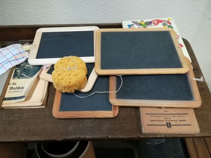 Dort lernen wir, dass vor 200 Jahren die Klassen 60 bis 100 Schüler hatten. Die Jungen saßen in den Bänken und die Mädchen am Rand. Und vorne stand der Lehrer mit dem Rohrstock. Es herrschte noch Zucht und Ordnung.